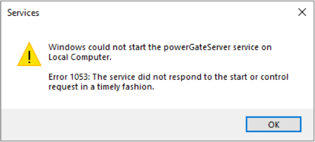 Starting powerGateServer service results in error 1053